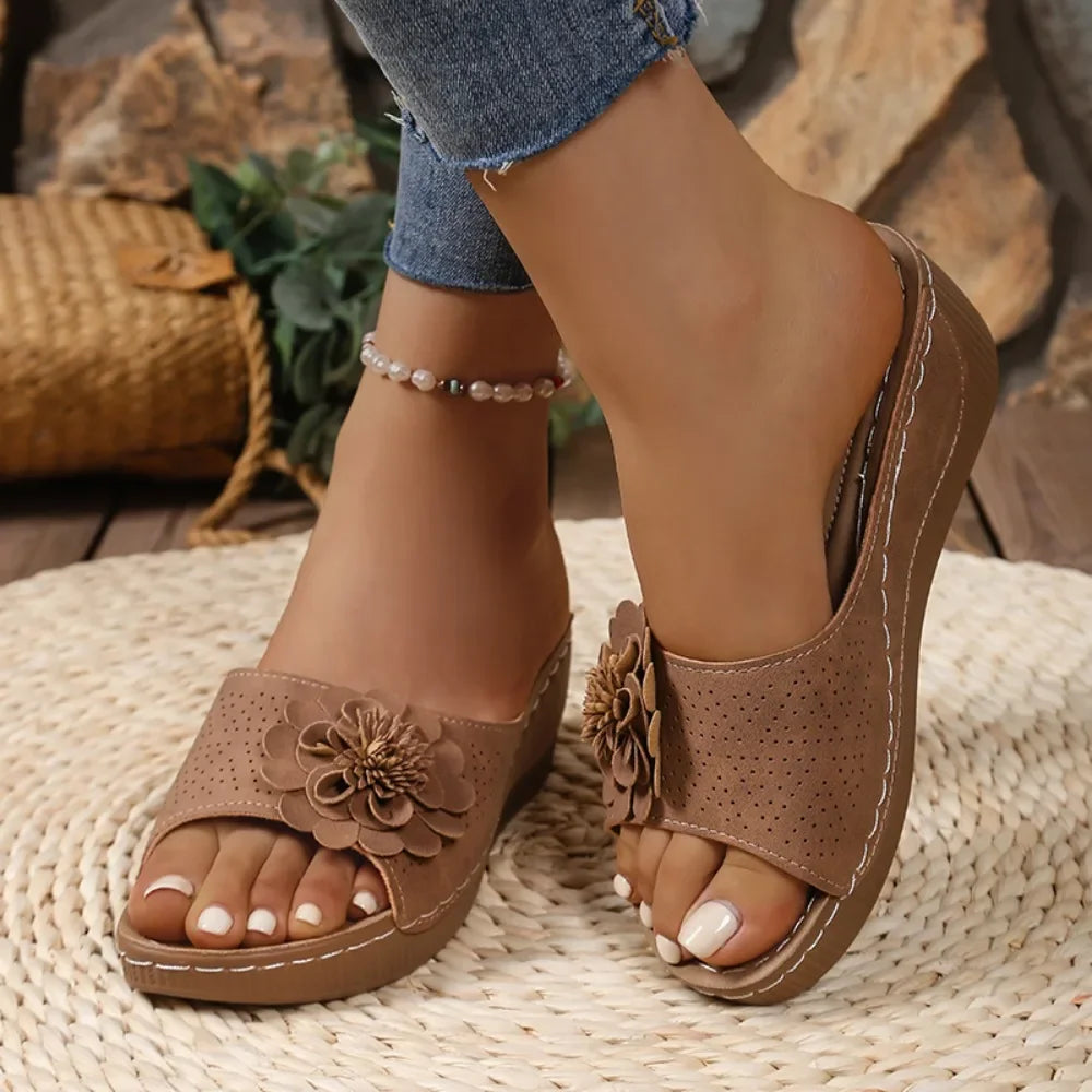 A Essenza Sandália Floral Bloom entrega o equilíbrio perfeito entre charme e bem-estar: plataforma de cunha que alonga a silhueta sem cansar, tira acolchoada que abraça o pé com maciez e uma flor 3D elegante que levanta qualquer look — do jeans ao vestido leve. Leve, estável e com solado antiderrapante, ela foi pensada pra você caminhar o dia inteiro com segurança e estilo. ✨